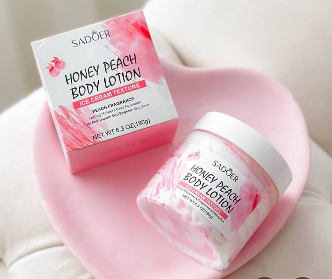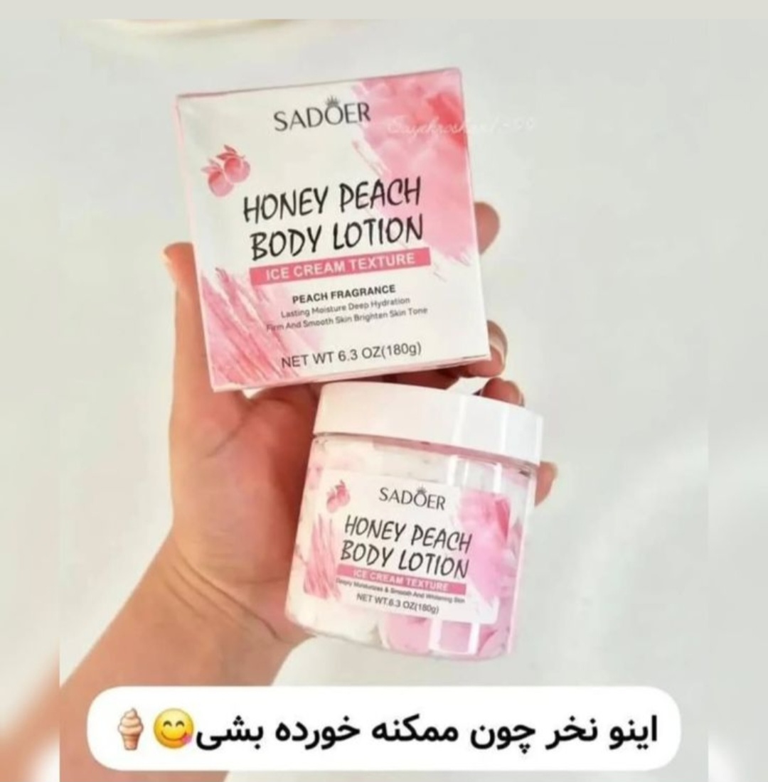 بستنی و لوسیون روشن کننده هلو و عسل بدن سادور SADOERوزن 180 گرمرطوبت رسان پوسترفع خشکی و رفع ترک و پوست های مردهرایحه عالی و فوق العاده خوردنی توت فرنگی و هلوروشن کننده فوق العاده پوستدارای مواد مغذی مناسب پوستترمیم کننده پوستشفاف کننده پوستدرخشان کننده پوست